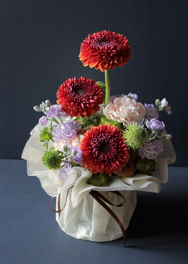 花教室 季節の花などを取り入れ、花に関する知識などを学びながら、 和やかな雰囲気の中で行っています。 こちらでご用意したアレンジの見本(写真の場合もある)を 見ながら自由に作っていただきます。